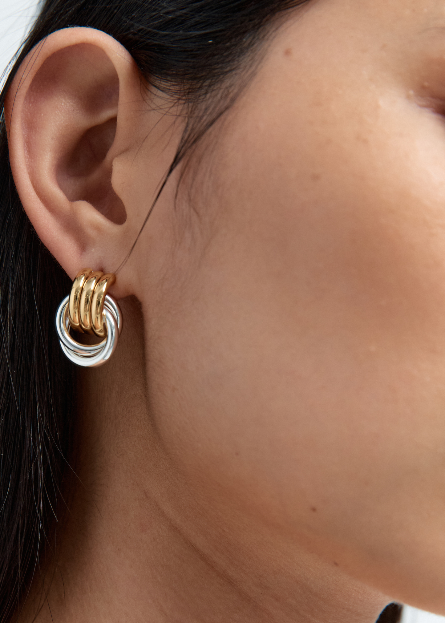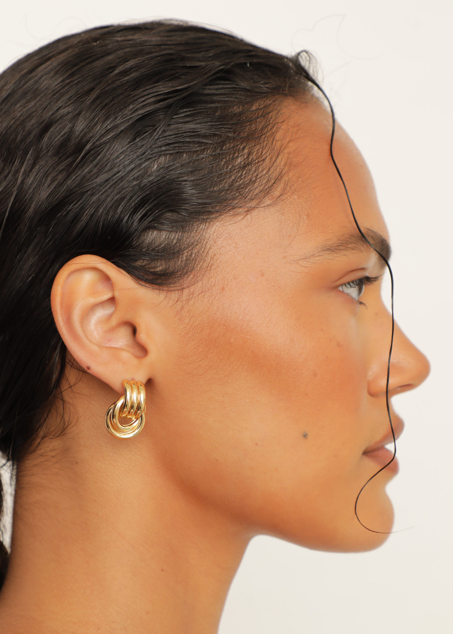 Crafted in PVD-plated stainless steel, the Baby Knot Earrings resist tarnishing, scratching, and discoloration while remaining hypoallergenic and water-resistant for everyday wear.