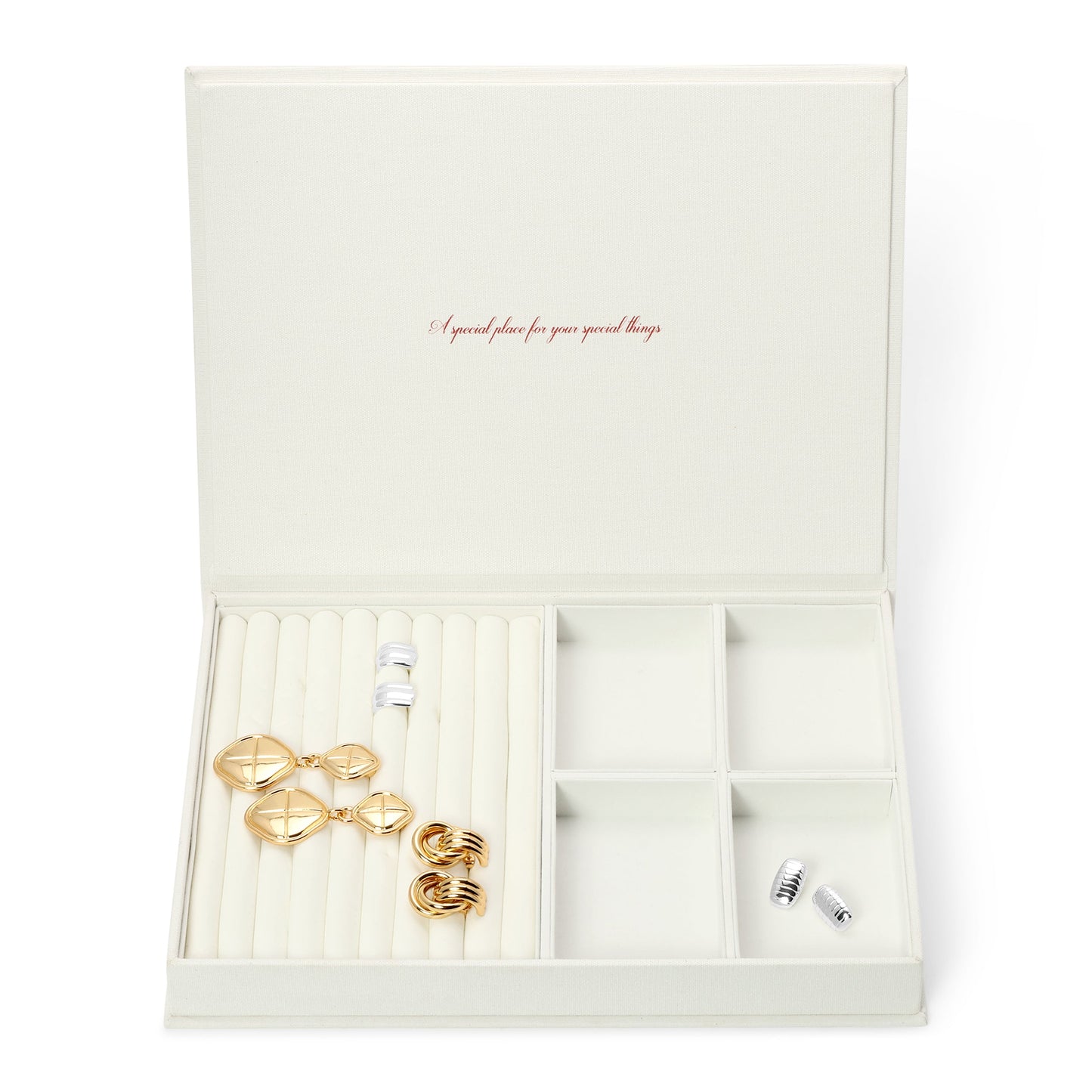 The Jewelry Book Box Collection is Heaven Mayhem’s sculptural approach to storage — where design and function meet. Disguised as timeless hardcovers, each Book Box opens to reveal a hidden interior, thoughtfully designed to store earrings, rings, necklaces, or other keepsakes.