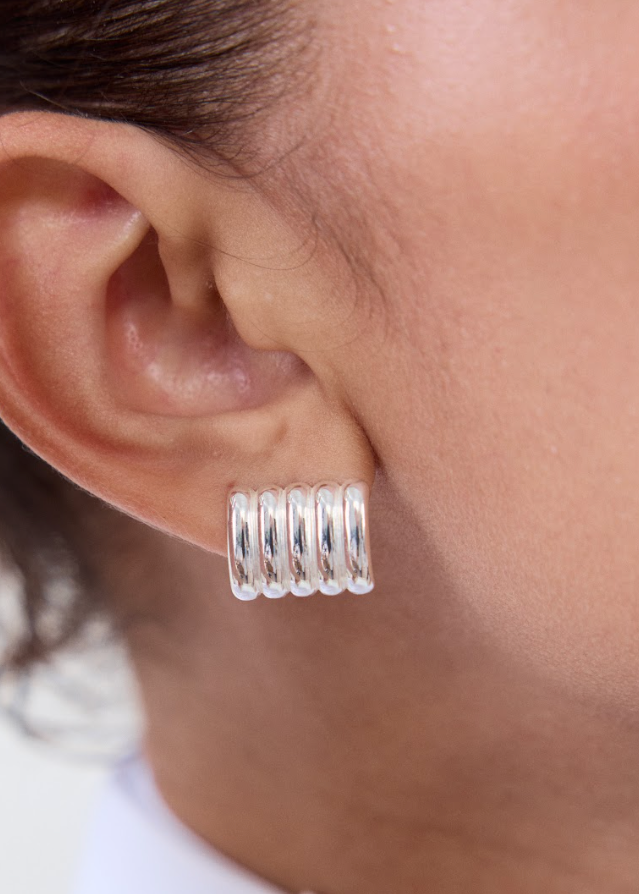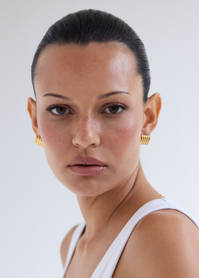Meet the Clemmie Earrings — Heaven Mayhem’s refined take on the classic stud. Designed with a ribbed texture and gently curved silhouette, Clemmie adds understated elegance and dimension to your jewelry collection.