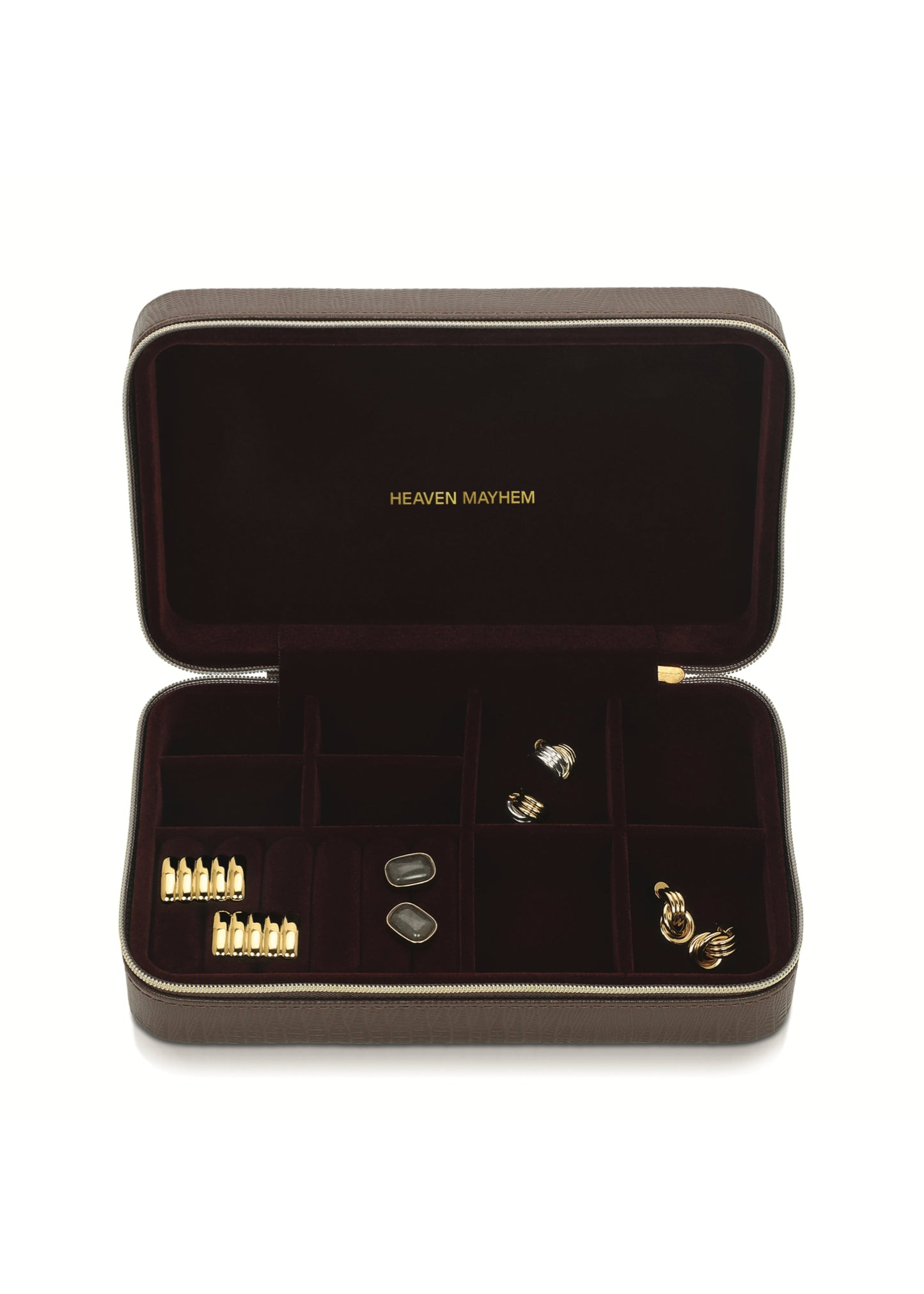 Travel smart, arrive polished. The Heaven Mayhem Jewelry Travel Case eliminates the stress of packing jewelry. No more tangled necklaces, lost earrings, or damaged pieces—this structured case keeps everything organized and protected so you can focus on the journey, not the packing.