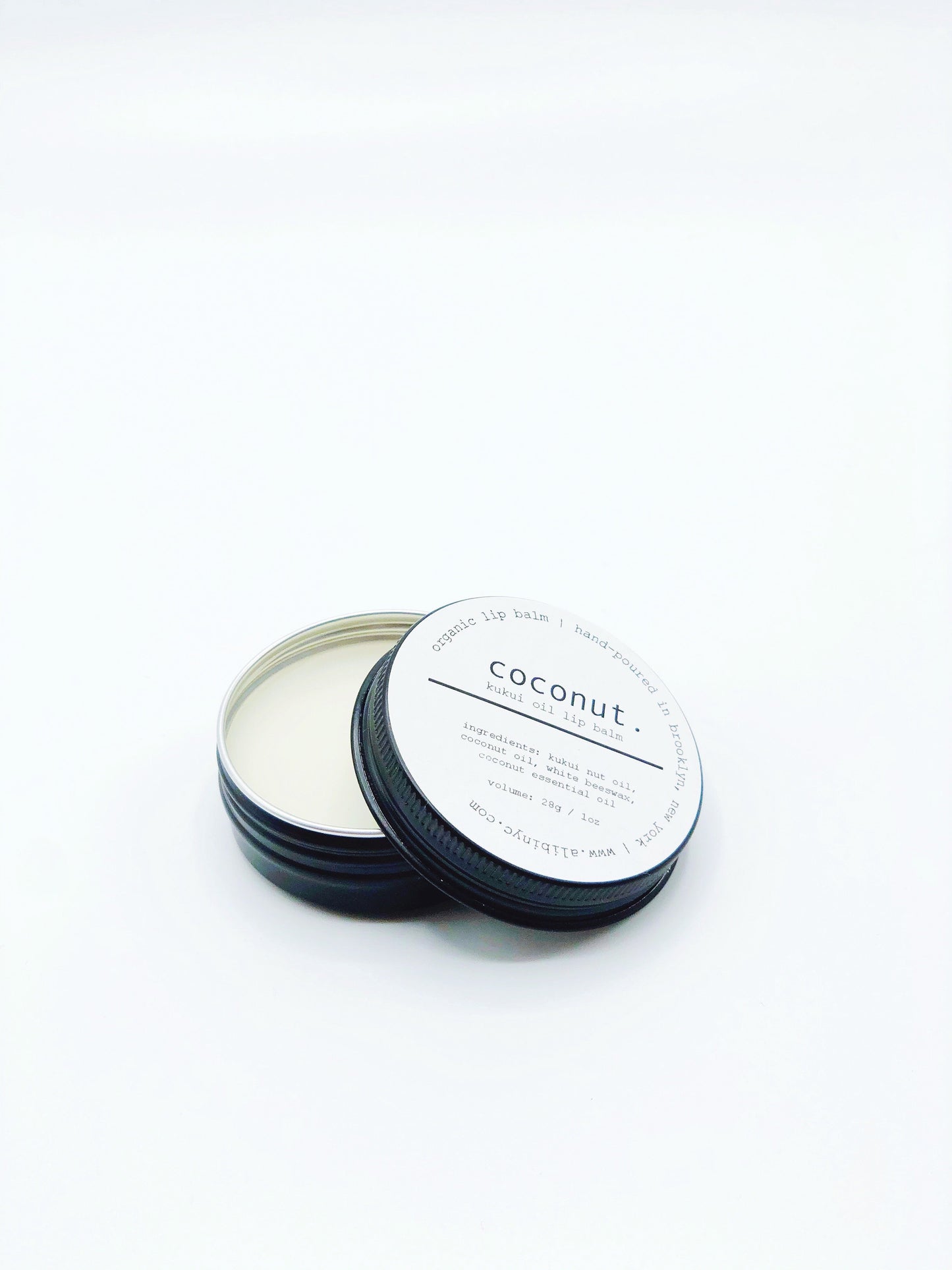 INGREDIENTS: kukui nut oil, coconut oil, white beeswax, coconut essential oil